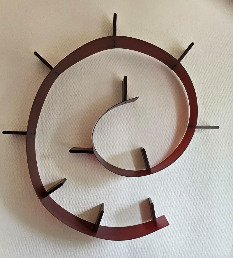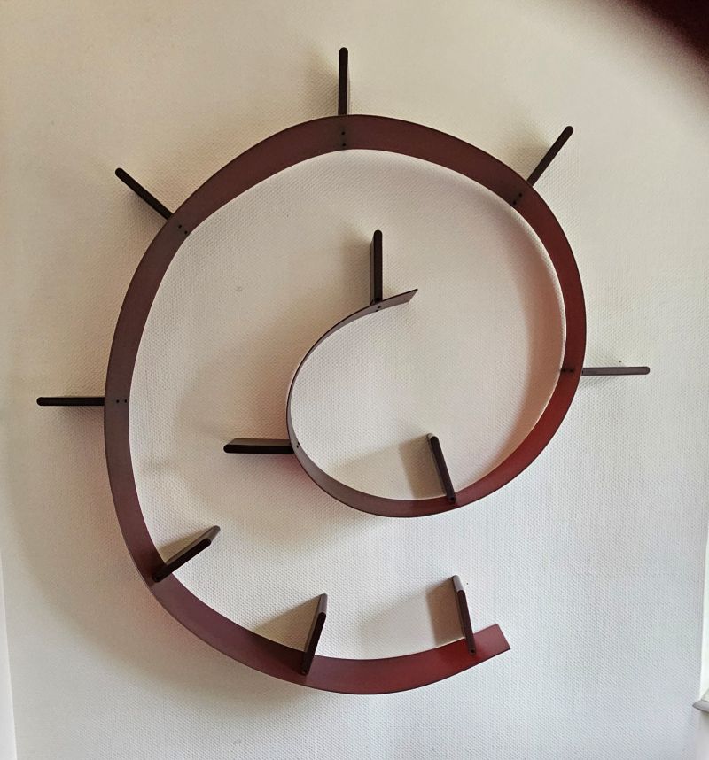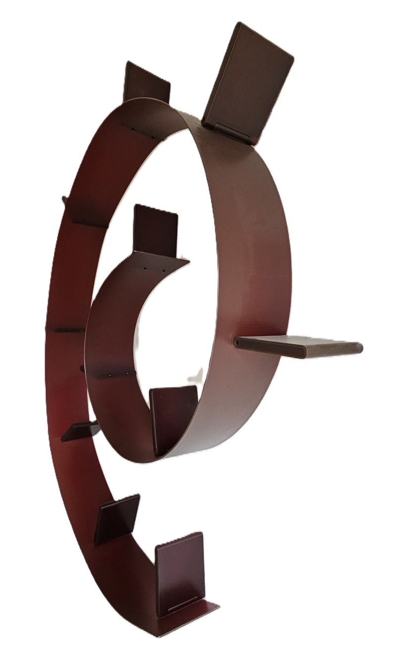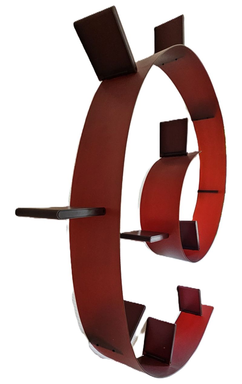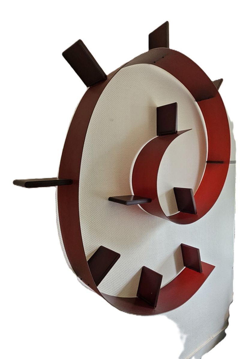 Originale étagère murale/ bibliothèque en plastique rouge design des années 90. Modèle bookworm de Kartell créée par le designer Ron ARAD. Elle est présentée en forme d’escargot mais peut également être changée de forme. Bon état