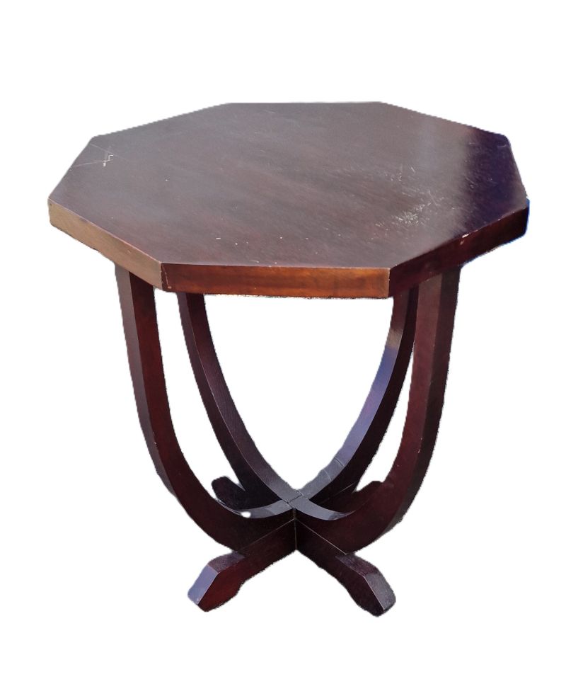 Petite table guéridon octogonal reposant sur 4 jambes réunies sur un pied central. Très élégante et aérienne, de forme typique Art Déco elle se logera facilement dans n’importe quelle pièce de votre intérieur ! vers 1920 période ART DECO. Bon état avec de fines rayures d’usage.